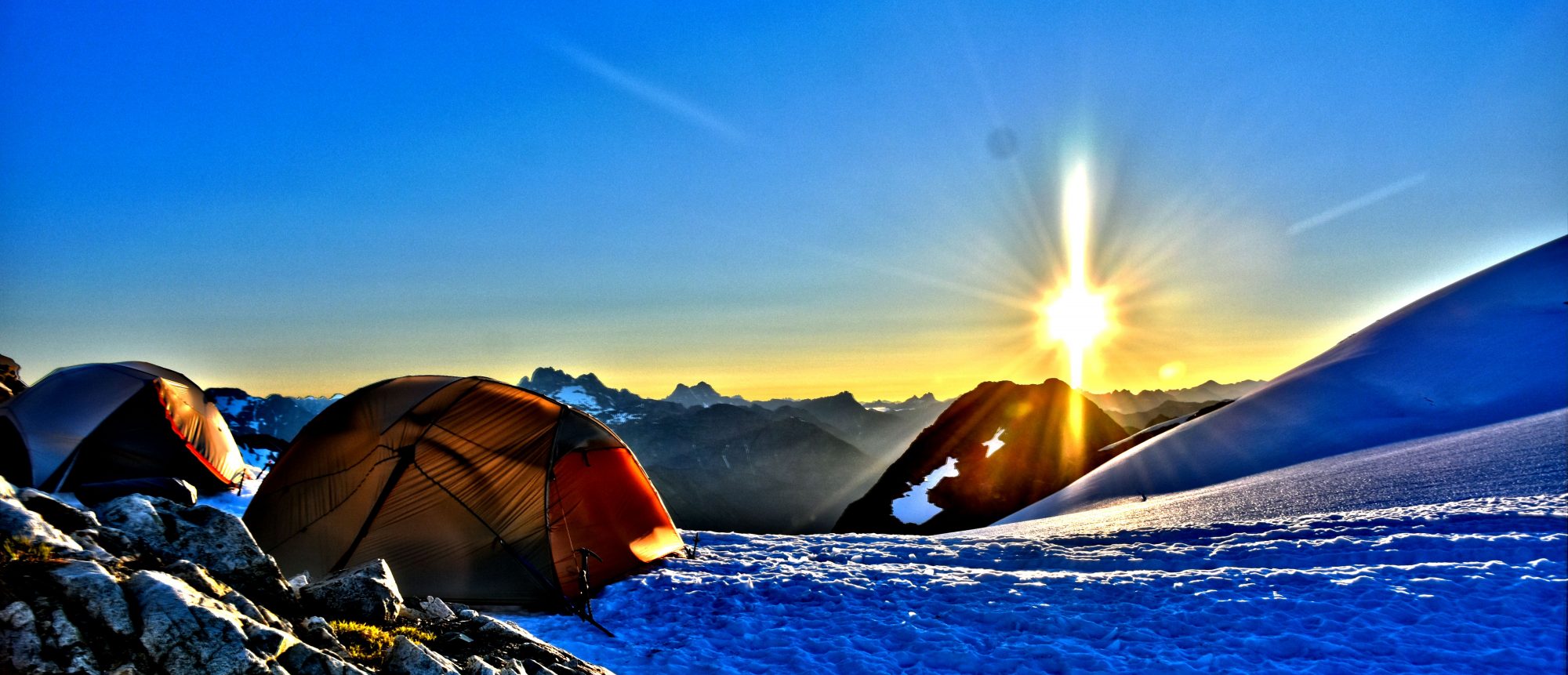 We quickly packed up and started to put on out boots and crampons. We have been stuck in place for nearly 24 hours and were ready to go. Soon as boots were laced up, all a sudden the clouds quickly started to break apart and you could bits of blue sky which was an amazing feeling of all a sudden we got moving fast using the blue sky as motivation. We worked out way up Middle Cascade Glacier navigating multiple crevasses and a couple snow bridges. I have hiked for nearly two decades and been through a lot of things, but glacier travel was new to me. It was beautiful and you can see and feel the power of these glaciers and it gave me a new appreciation I have yet to experience before this trip, but I was also aware of the dangerous and probably more cautious compared to someone who does this all the time. We made it to the top East notch just as the fog filled in the valley behind us. As we stepped into the notch looking into the Eastern side, my jaw dropped at the view. Blue skies ahead of us snow covered mountains in July with beautiful green valleys of land that most people will never see in person unless they fly above it.