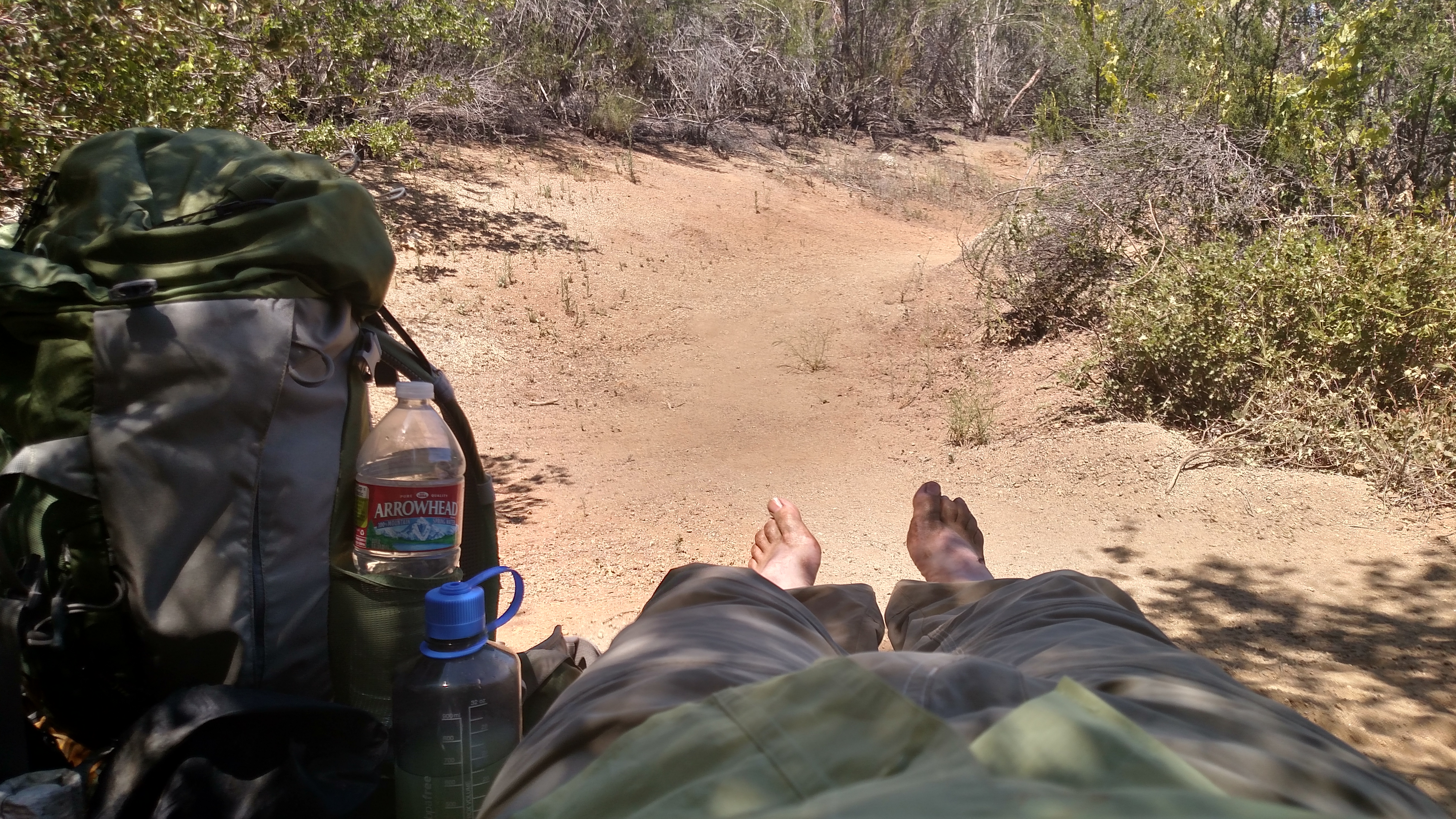Woke up at was on the trail by 6:15, which was later then I wanted. Last night was a new moon, so there were a million stars out to be seen! Refilled my water this morning at Lake Morena and quickly charged my phone a little bit while eating breakfast. I managed to reach the next campground at 11:15am and took a two hour break to have lunch and lay in the shade and let me feet relax. They are feeling the burn, as expected.