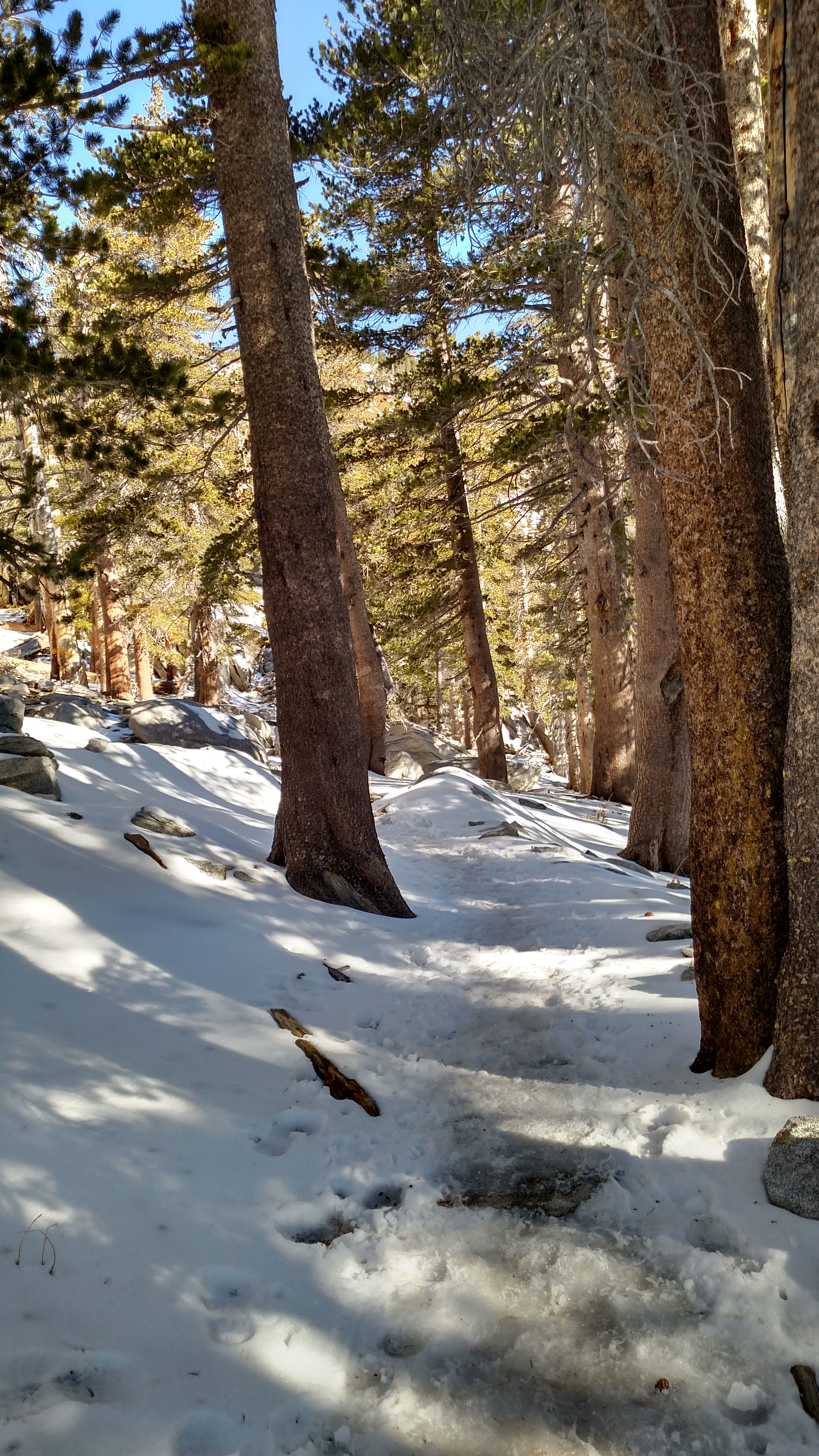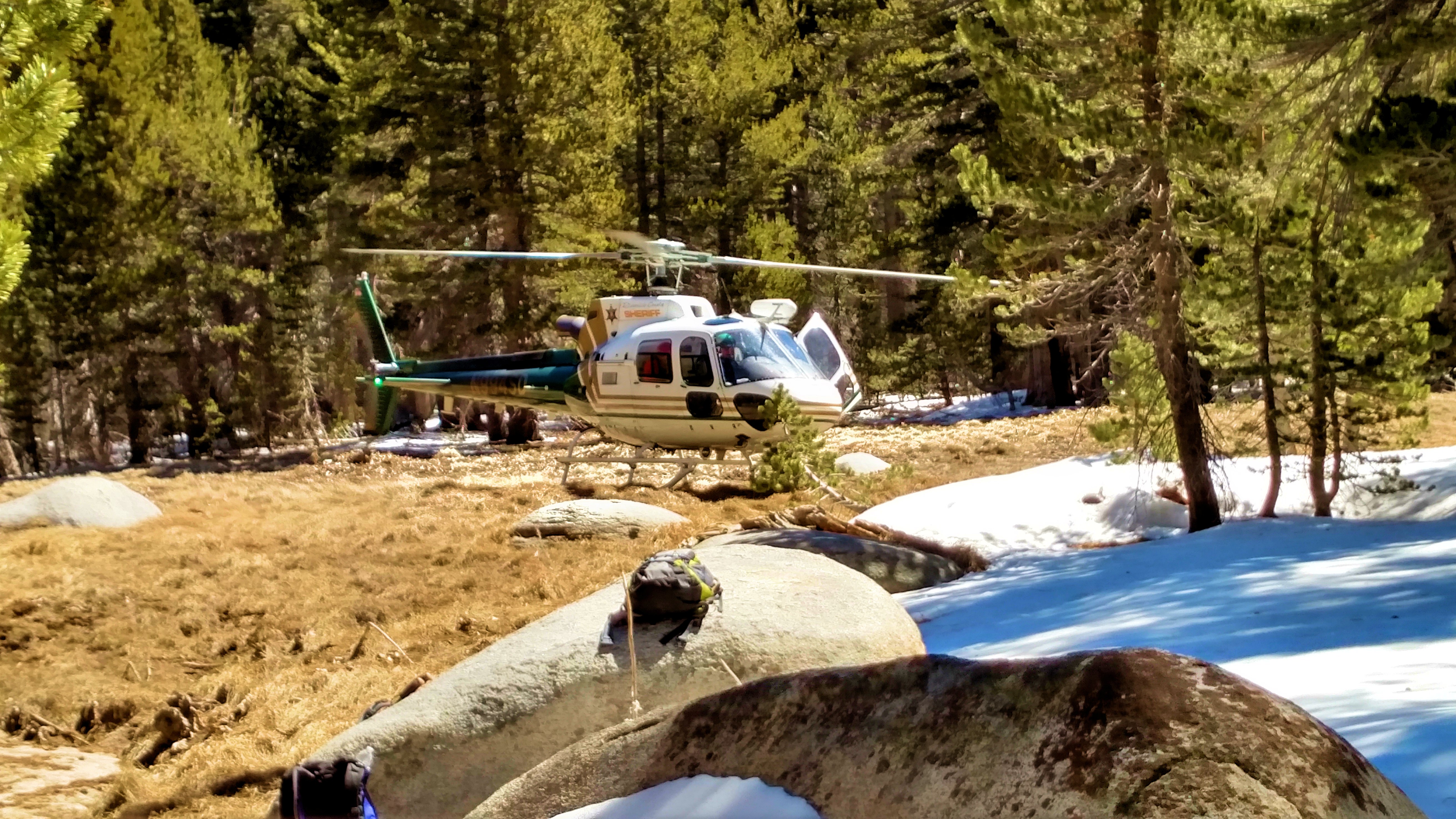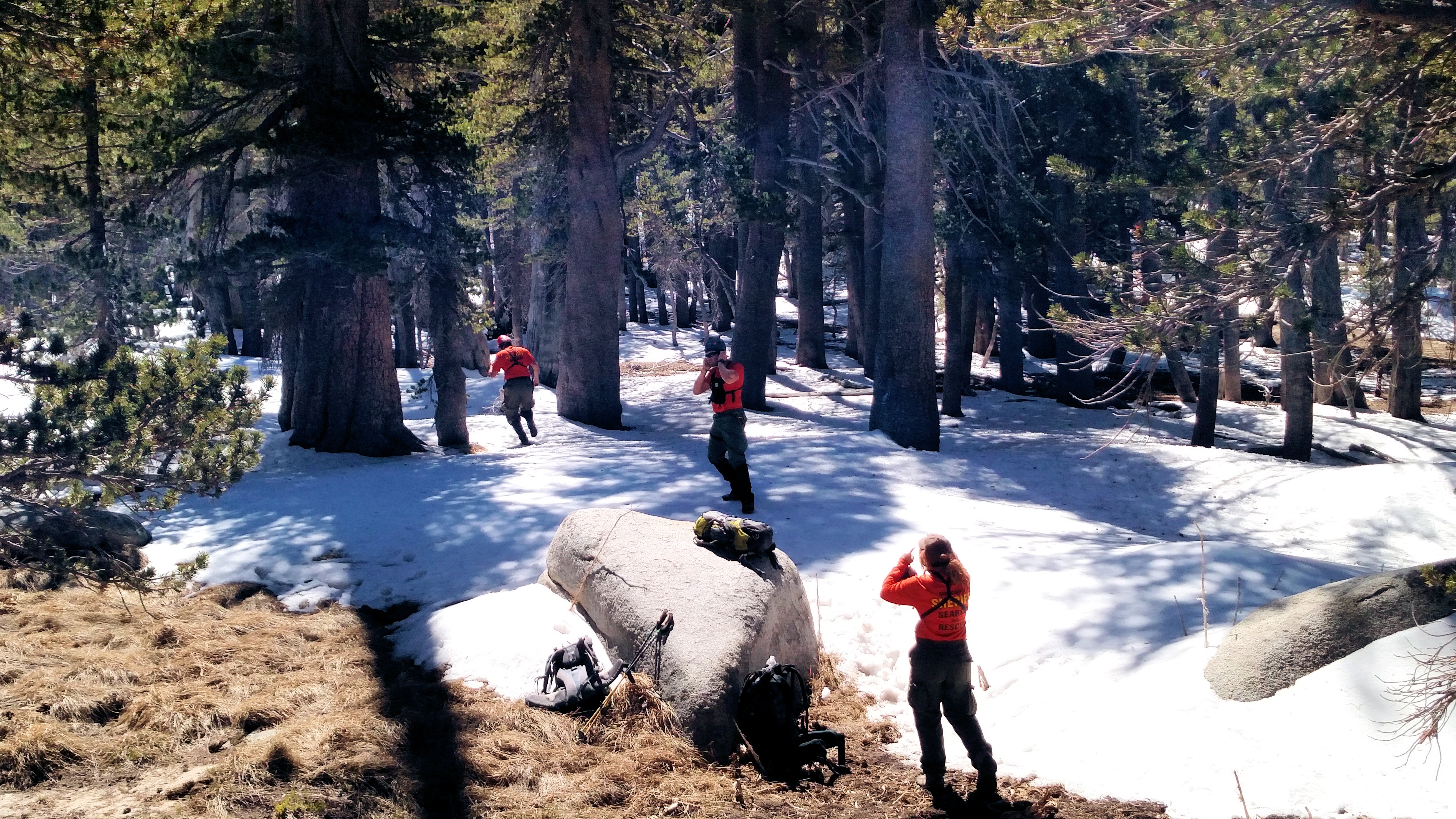 After about a mile down, a helicopter came flying right above my head and landed in an open space in the forest right in front of me. I noticed someone with gear had gotten out and once the helicopter left, I was greeted by three people with the Sheriff’s department. (Rita, Cody and Steve) They were part of a rescue team that was looking for an Asian male who had got lost three days earlier when the snow storm came in and was separated from his group of seven people. While talking to them, I got full details on what had happened and who exactly to look for in case I found someone. Due to the high altitude, they were airlifting in one person at a time as the helicopter could not fly that high with anymore weight. Once the helicopter was on its way back, with the forth person, they needed to get moving and prepare for the arrival of their forth (Jay). I can’t say how much I appreciate what they are doing by risking their lives to hopefully save another. (video of the fourth arrival will be posted soon as I can get the correct format changed) On the way down, I ran into a few more teams of people, one who was rocking climbing up one of the only water sources in the area and some search dogs teams as well. It’s amazing to see how many people are searching for this person and hopefully he is found alive but its starting to look dim when they are about to be going on four days missing.