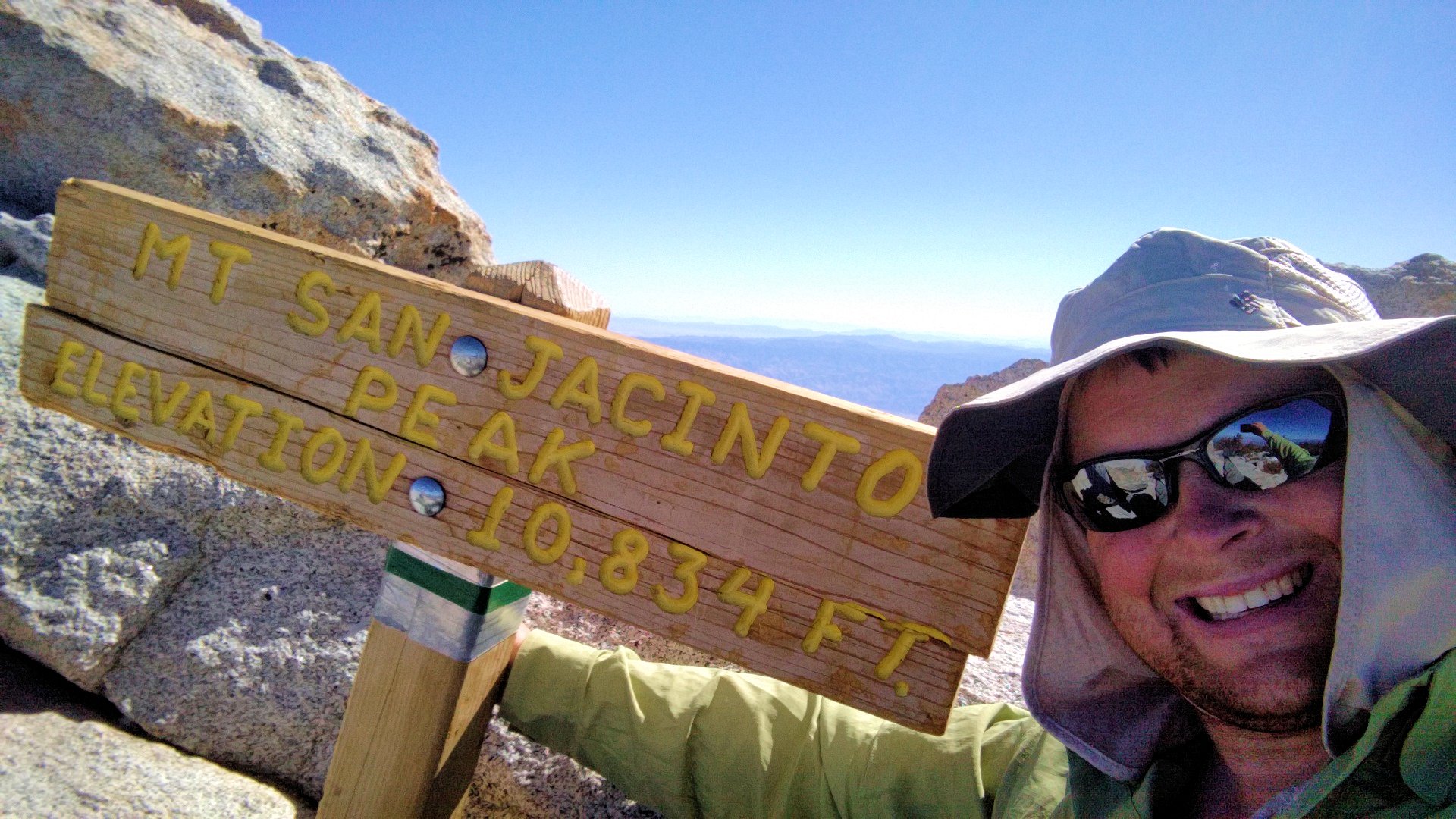 Finally got packed up and moving by 6:45am. Made my way through the snow and by 9:00am, I had reached the summit of Mt. San Jacinto. It was an amazing feeling to stand at the very top of the mountain and look 360 degrees around me. Just a little ways down I stopped at the shelter to sign the register and continue my trip back down the mountain.