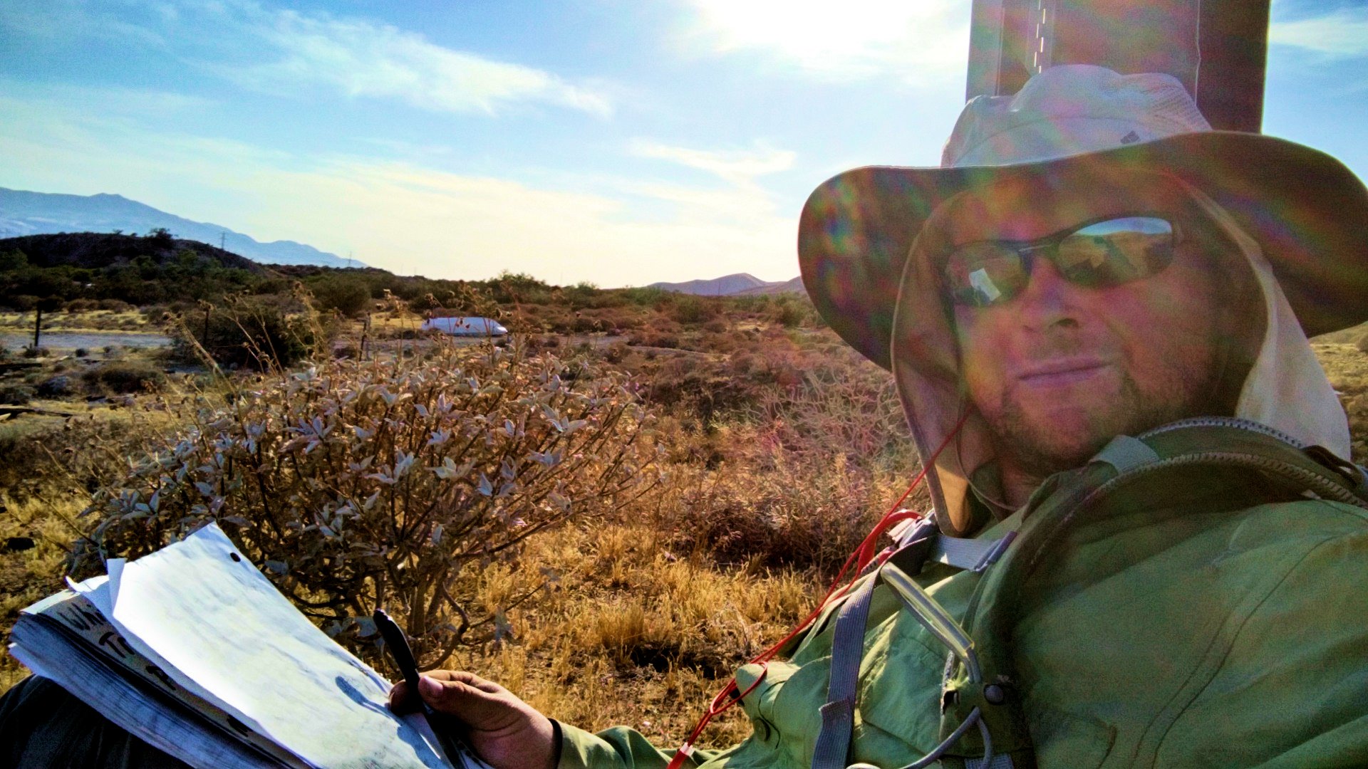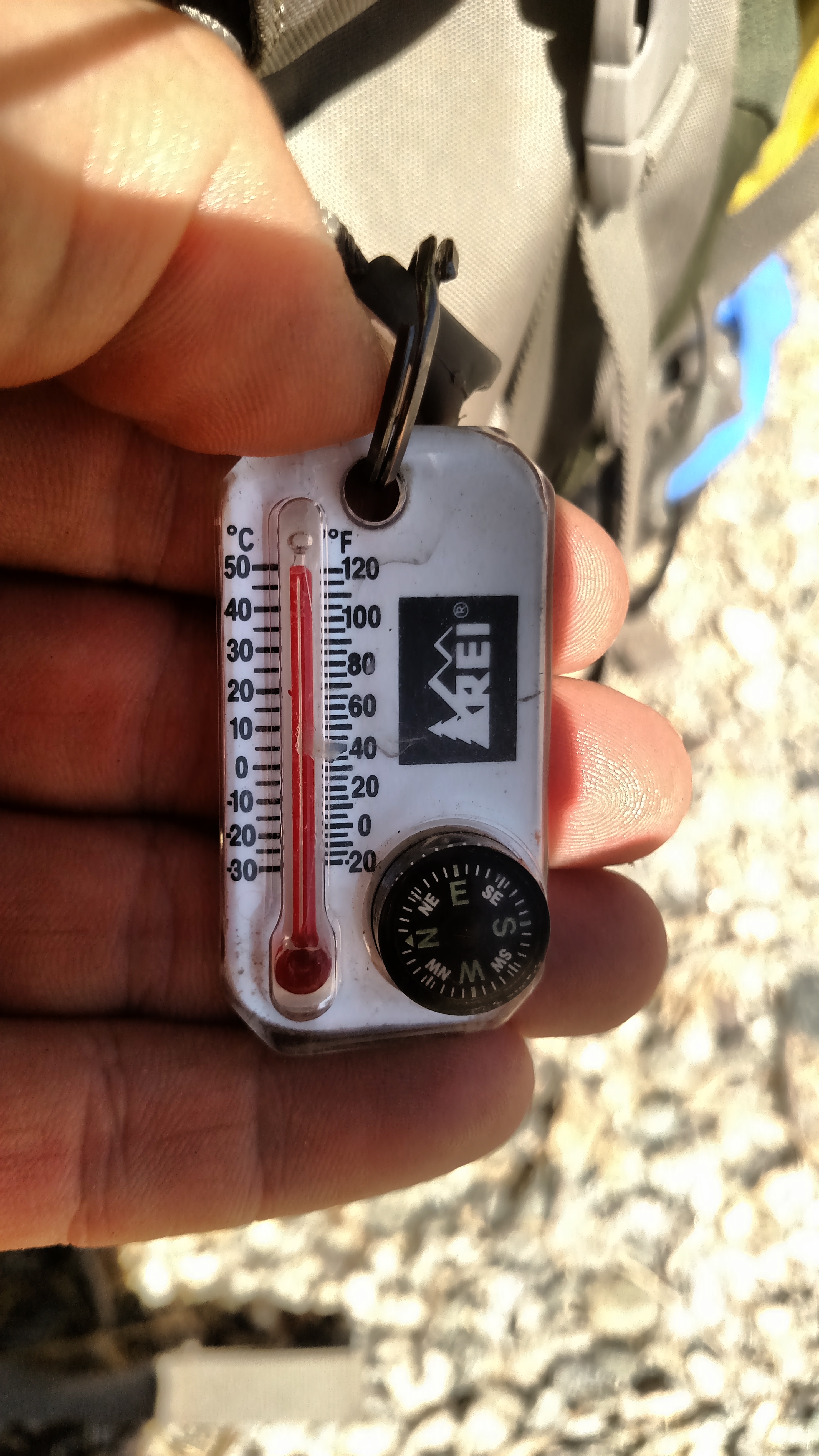 I continued the slow march down the mountain which took a lot longer then most of us thought it would. We finally reached the bottom where there was some water coming out of a pipe and only five miles across the flat hot sand to reach Ziggy and the Bear. I pulled out my chapstick only to see it had been reduced only to liquid. We all checked our thermometers and they all said 120 in direct sunlight which was believable being the house readings that day were 102 in the shade.