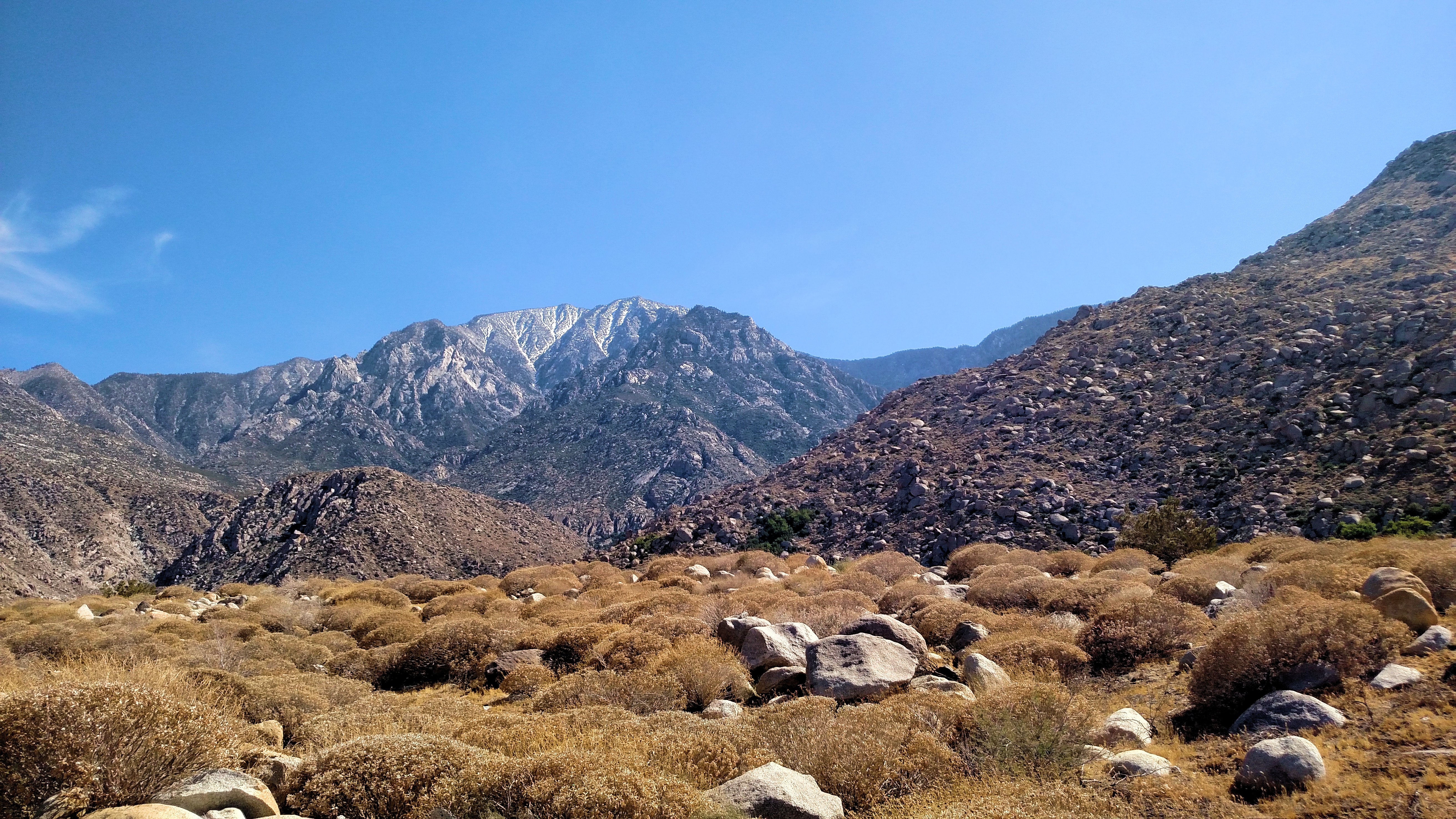 I had 17 miles to go in order to get to Ziggy and the Bear which are two trail angels who have been in the area for the past four years helping hikers. My destination only looked five miles away and felt like it could be a easy not counting the heat. I proceeded downhill as the sun rose and the teampature continued to rise rapidly. All of the hikers knew and were expecting temps into the triple digits for the next couple of days and there would be almost no shade the whole way down. I managed to climb under a huge boulder around 1:00pm and hide from the sun for an hour or so.