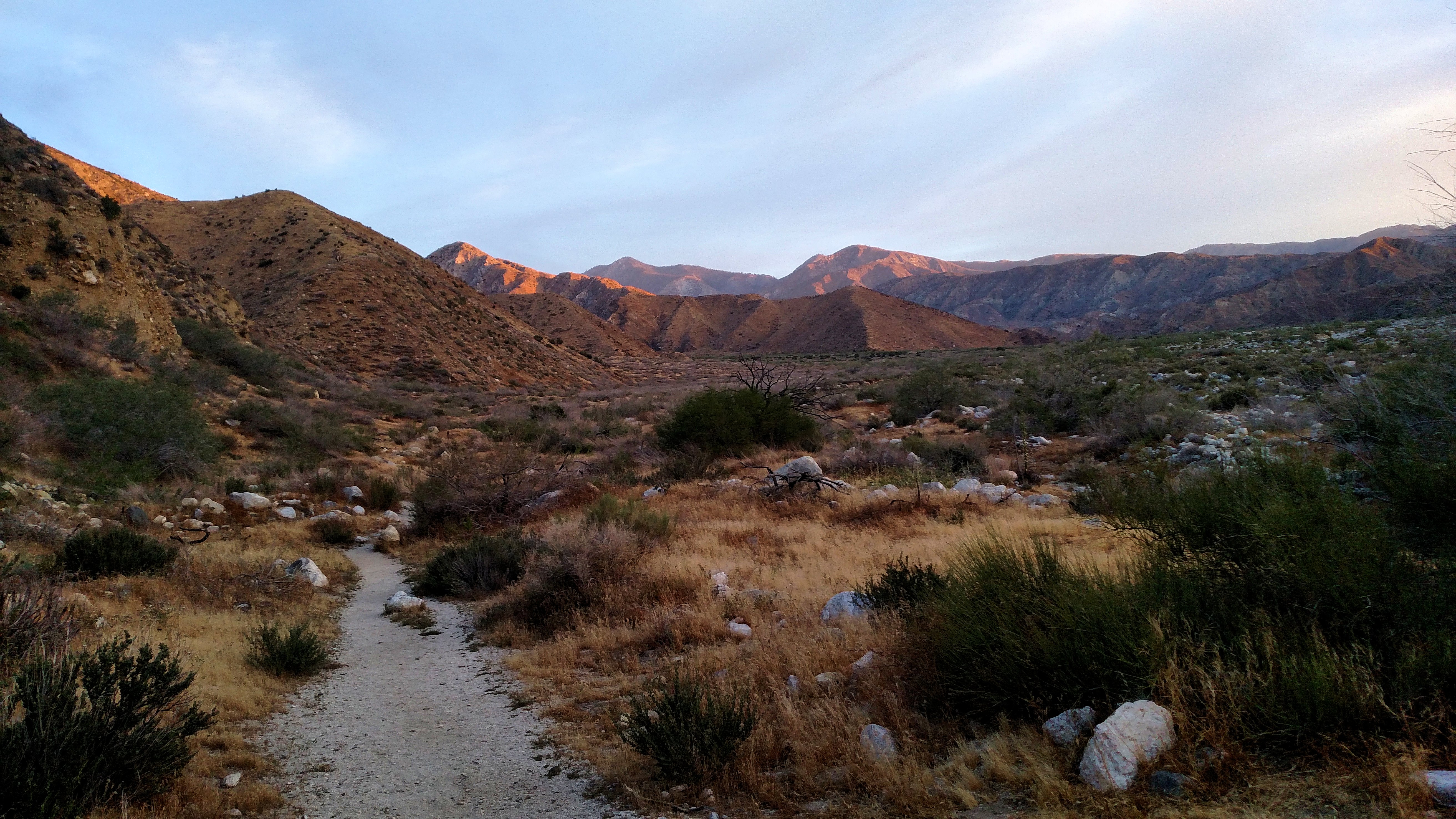 Woke up early this morning to some nice colors in the sky. Quickly rolled up my sleeping bag and sleeping pad and I was off on the trail. Today was the start of walking up inside a long canyon.