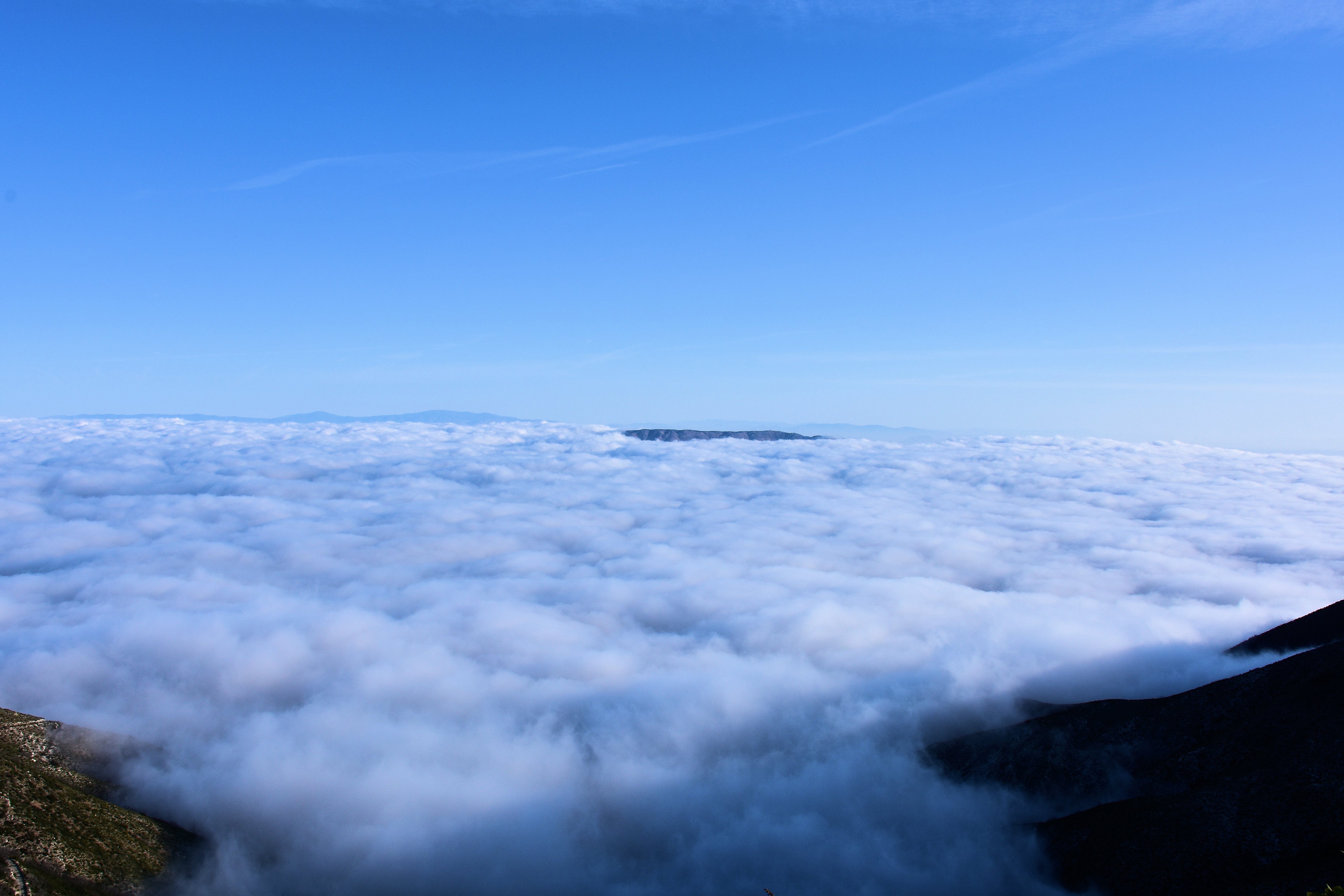 Woke up and crawled out of my tent to an awesome sight of the clouds low across the valley. After only a couple miles and before dropping lower then the clouds, I stopped for a quick breakfast and talked to a couple hikers who were passing by. I noticed a LA County Fire helicopter fly overhead and hopefully there isn’t anyone else missing or any fires near by.