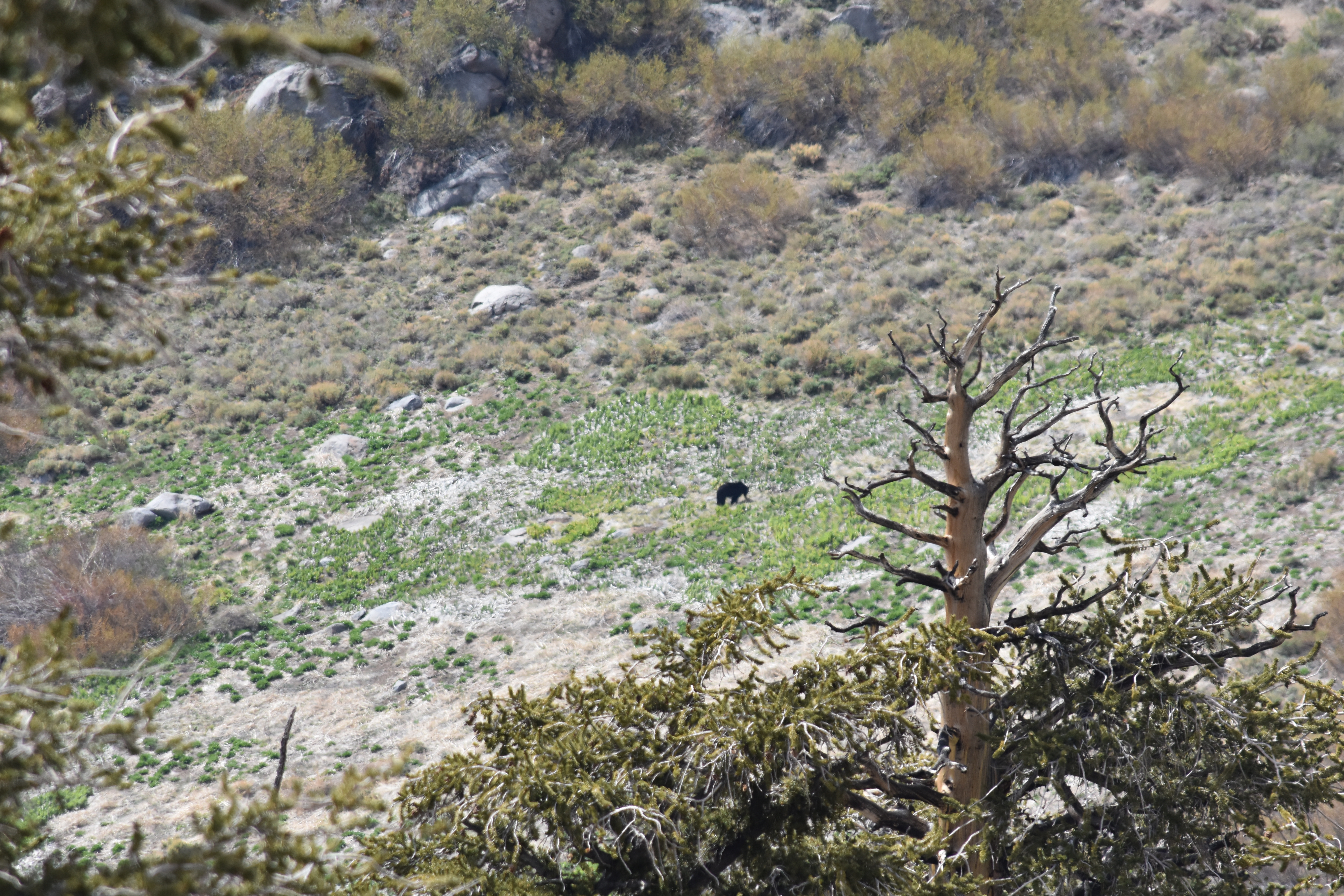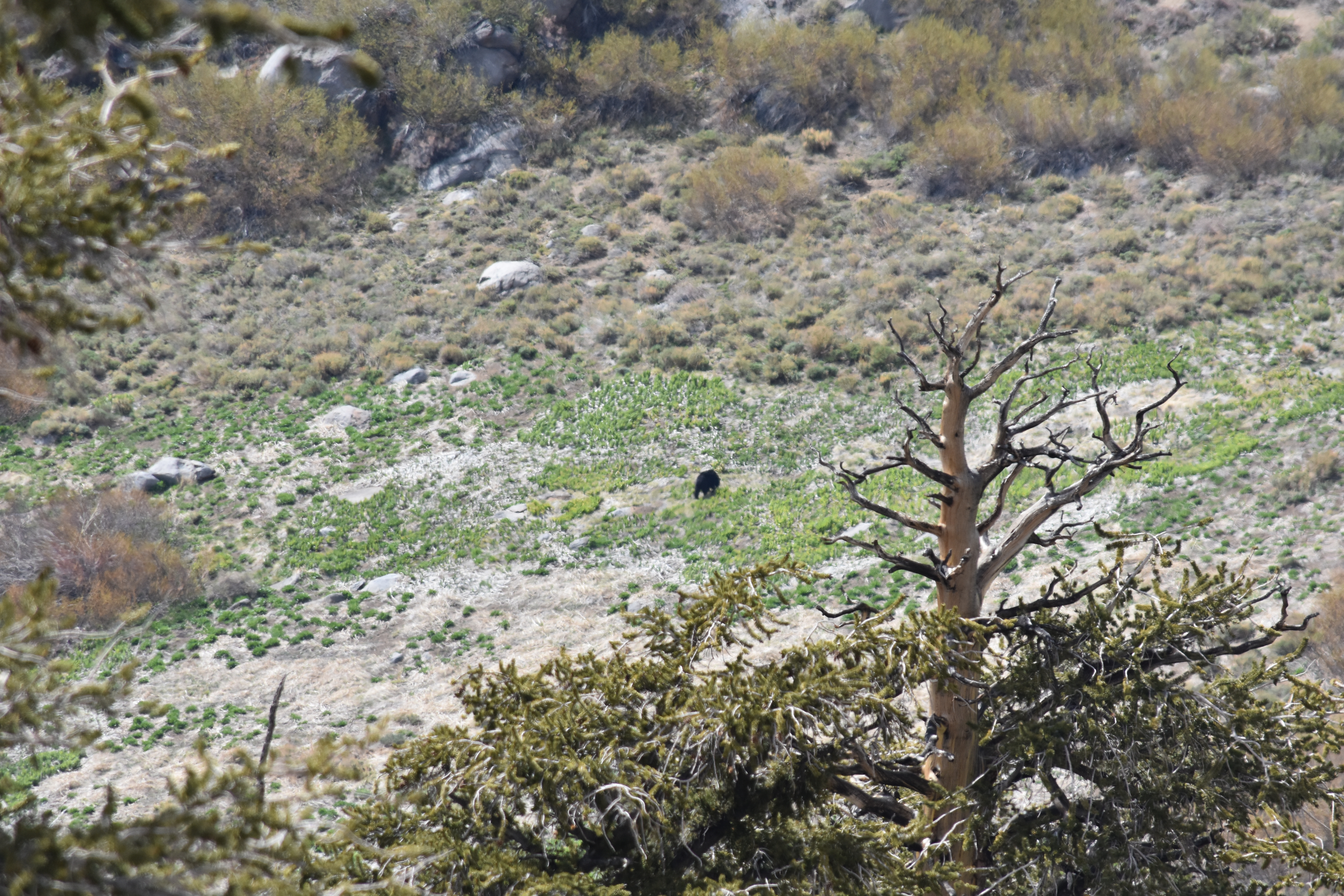 I continued on through the day and all a sudden something caught the corner of my eye. A black bear! It was far off in the distance which two other hikers who were coming up behind me, they had a hard time seeing the bear and had to show them on my camera which had a 300mm zoom lens and still couldn’t even get a clear photo from this far away. This is probably a good moment to explain my trail name, Eagle Eye. I received the name for my good eye sight and I can pick animals or people from very far away. I did actually have my vision checked before this hike and I still have perfect vision which was good to hear. The bear was far of in Brush Meadow and appeared to be just digging around.