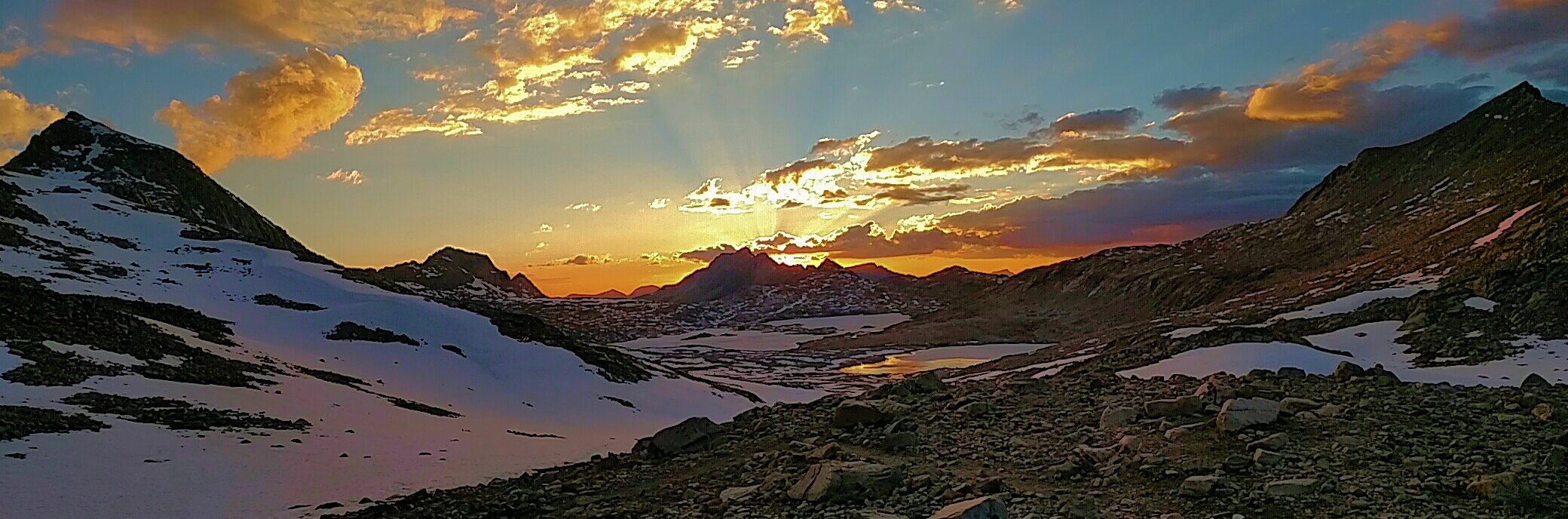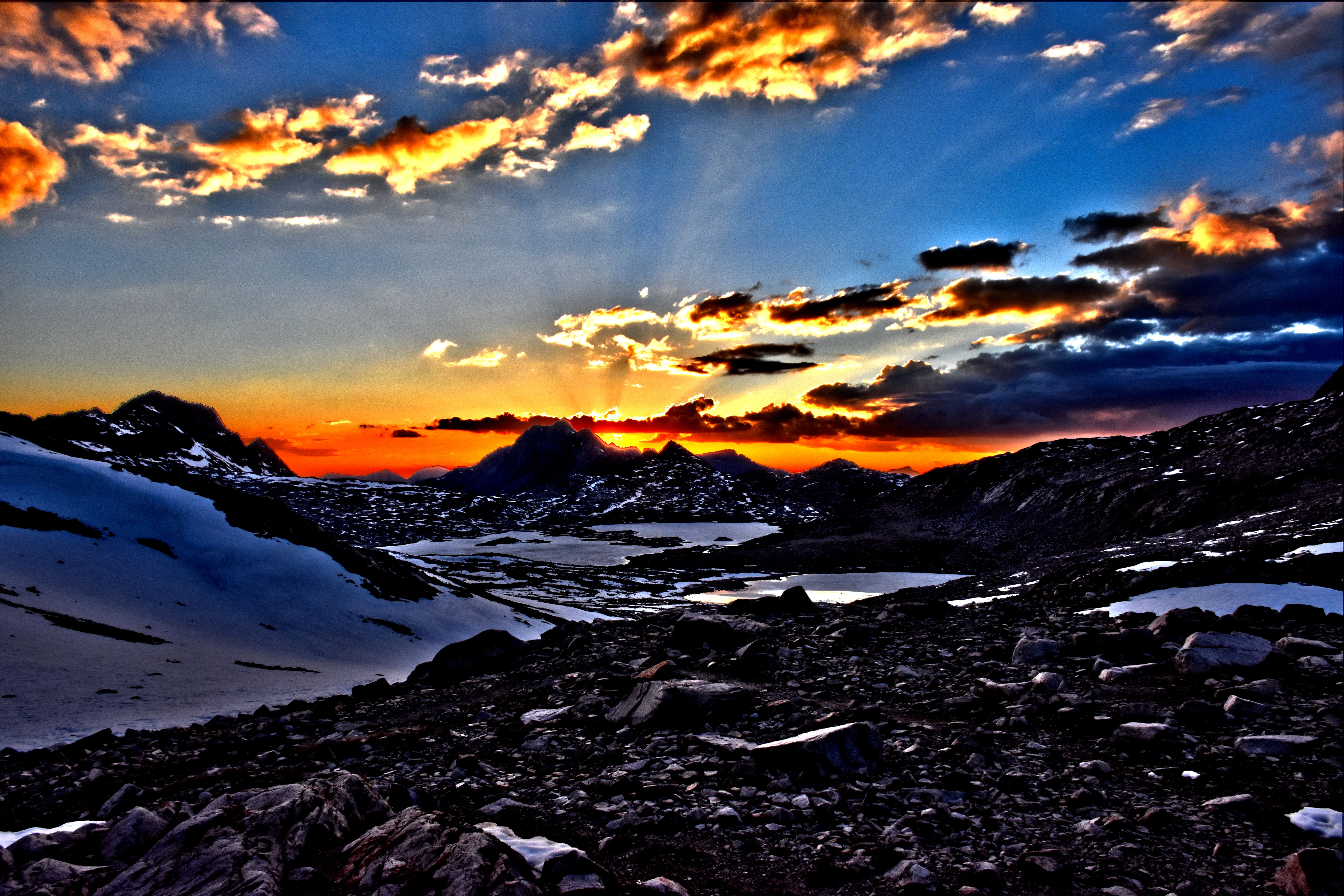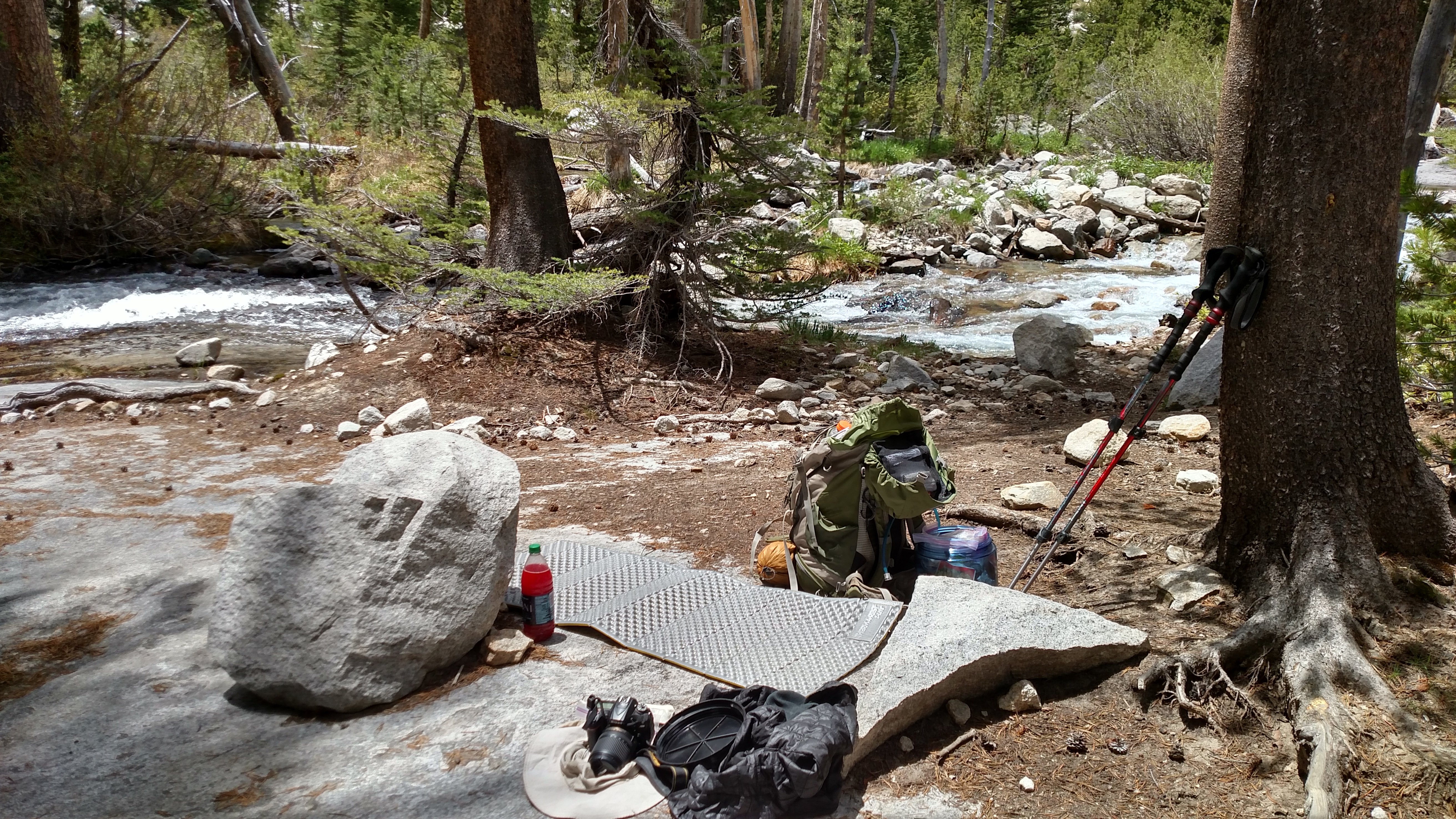 Woke up a little later then normal. Today was a slow day and rumors I had heard told me there will be a lot of snow climbing up to Muir Pass and then down the other side as well. Up until now, every pass is completely snow free on the South side and then completely snow covered on the North side. Not long into the day, I had a early lunch next to a small river and laid out on my foam pad. Not very surprising that I haven’t seen a single person yet today.