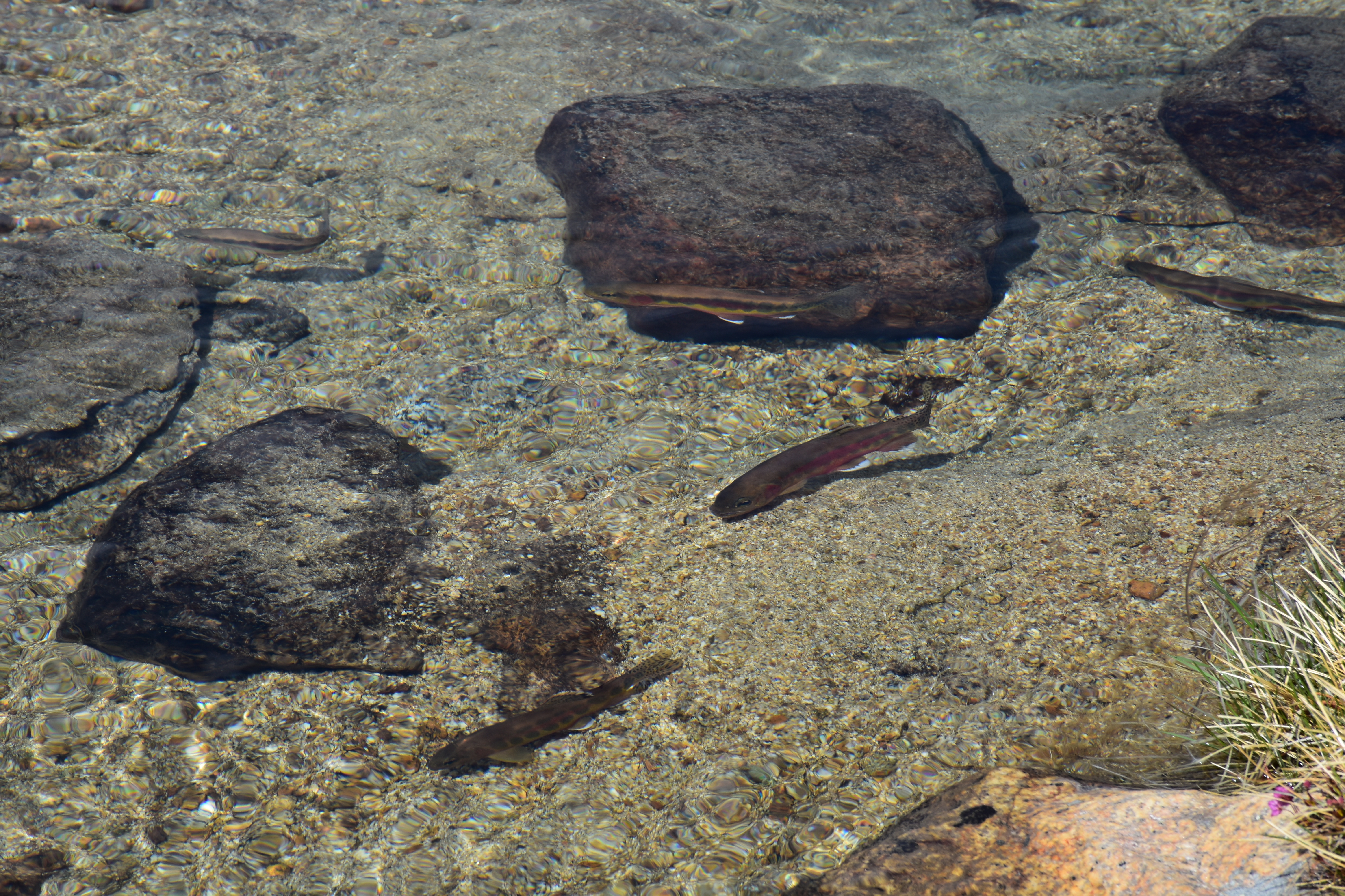 I met Little Bear and Aqua Knot and I let Little Bear borrow my solar panel so he could charge his phone that was dead. We agreed to meet up at McClure Meadows later in the day and I would get the charger back then. After meeting up, it was time to move on again and get ready to ford Evolution Creek which claims it can be difficult. It wasn’t too bad and ended up only being knee deep and just really cold! Lots of fish to be seen!