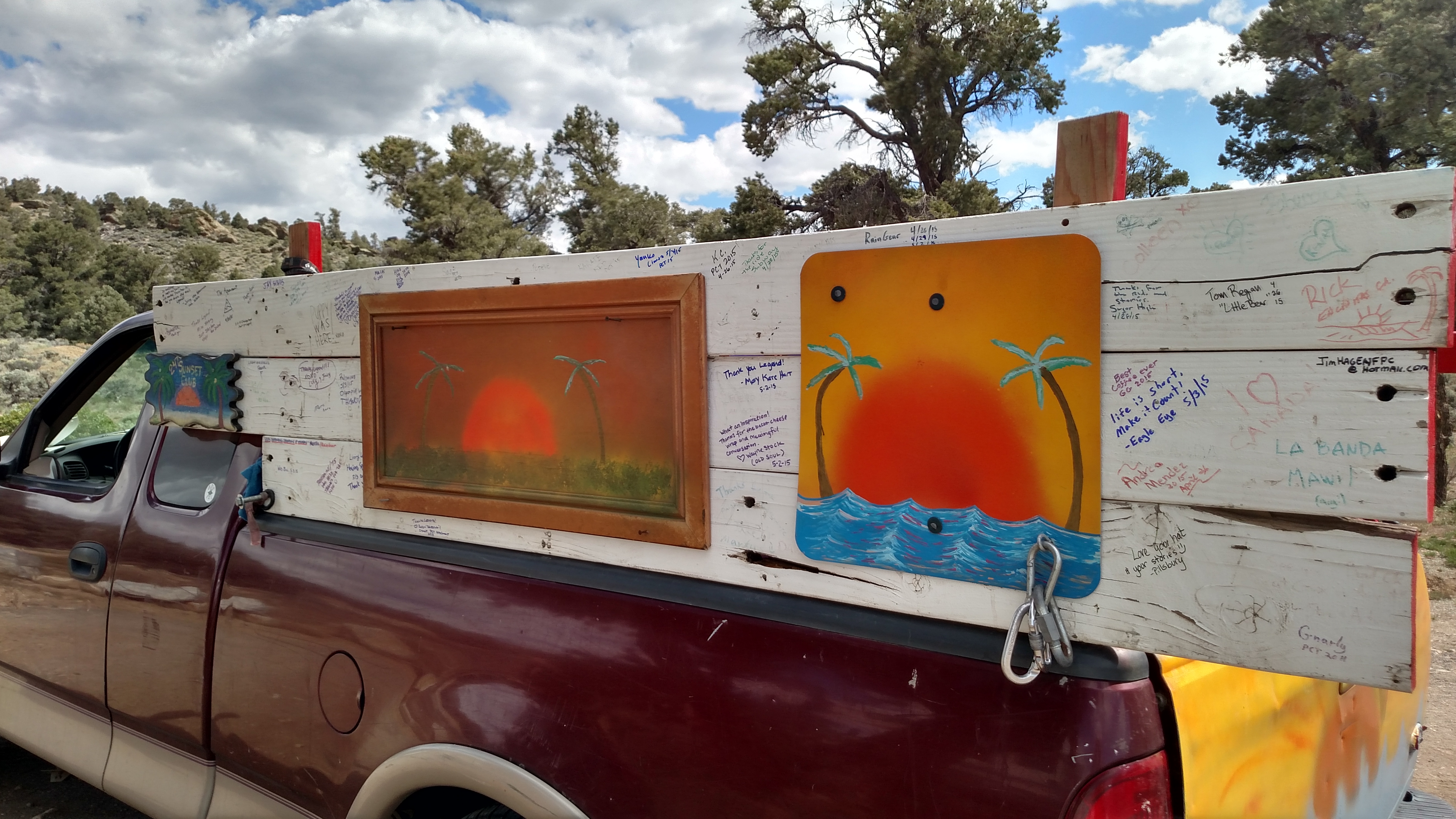Today was the day to finally get into Big Bear Lake. It was a decent hike with not to much elevation change and I arrived to the highway with Seth and Malia at the same time. We were greeted by Legend who hiked the PCT in 2013. He made us some apple Kool-Aid when we arrived. He gave us a marker to sign and write something on the truck he is driving up and down the whole trail helping people out as needed or just making food. I used the blue marker and wrote on the truck before we walked across the highway to try and hitch a ride into town.